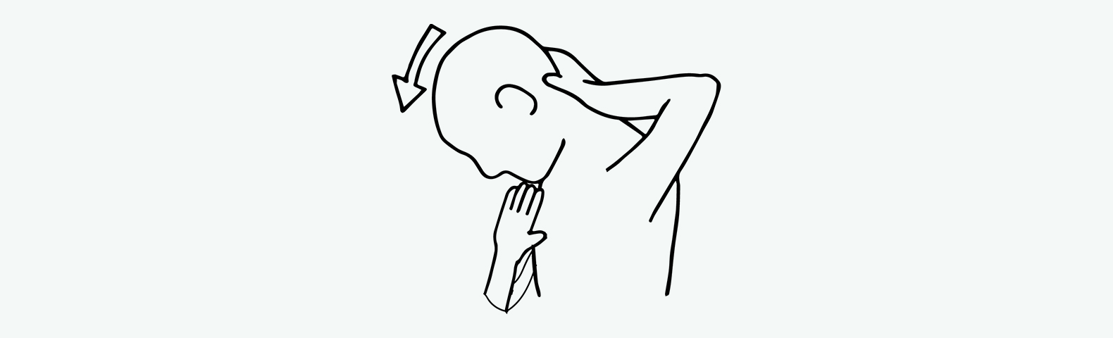 Gently bend your head forward with one hand, whilst guiding your chin towards your chest with the other, until you start to feel a stretch at the back of the neck. Hold this position for 30 seconds and repeat twice.