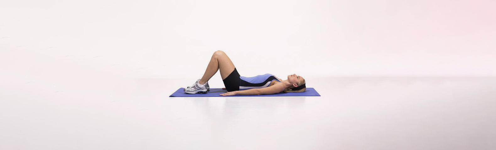 - Begin by lying on the floor with your knees bent and feet flat on the floor